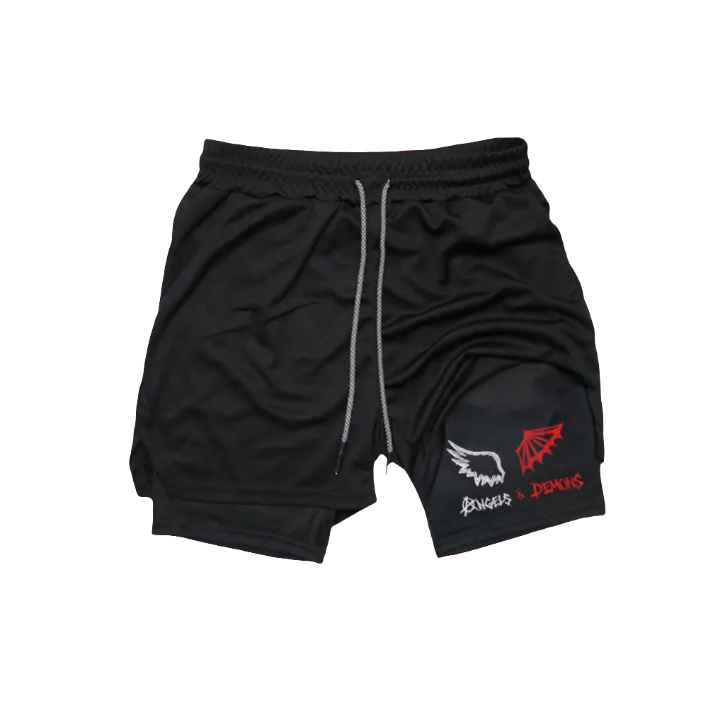 Stay comfortable and stylish in the Angels & Demons 2 in 1 short. Versatile and functional, this short features a built-in compression layer and moisture-wicking technology for maximum performance. With a sleek design and superior comfort, this short will elevate your workout to the next level.